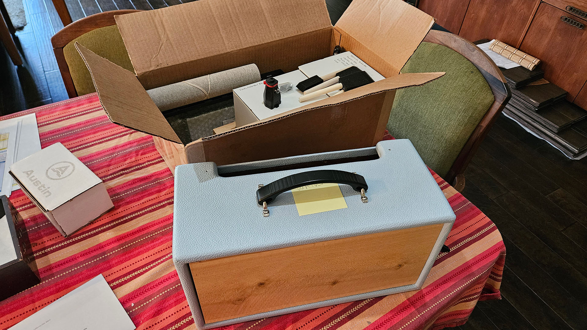 If you are a real go-getter, Save $200 and Build the Cabinet: Assemble the pre-cut wood pieces, sand the edges, glue-up the corners, then apply the Tolex and Grill Cloth. You'll build self-confidence and learn true craftsman techniques by following our step-by-step DIY Video instructions. A few low-cost hand tools are required, but You can do this!! YouTube Playlist